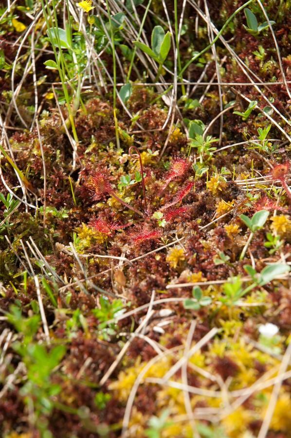 Plantes emblématiques des tourbières acides, elles présentent une rosette de feuilles appliquées au sol, élargies en spatule et couvertes de poils rouges, scintillants et collants. Les petits insectes s’engluent dans ces poils qui viennent lentement les enserrer pour mieux les digérer grâce aux enzymes qu’ils secrètent. Au centre de la rosette émerge une hampe qui dresse au-dessus du sol une grappe de petites fleurs blanches, permettant ainsi aux insectes pollinisateurs d’éviter les pièges !