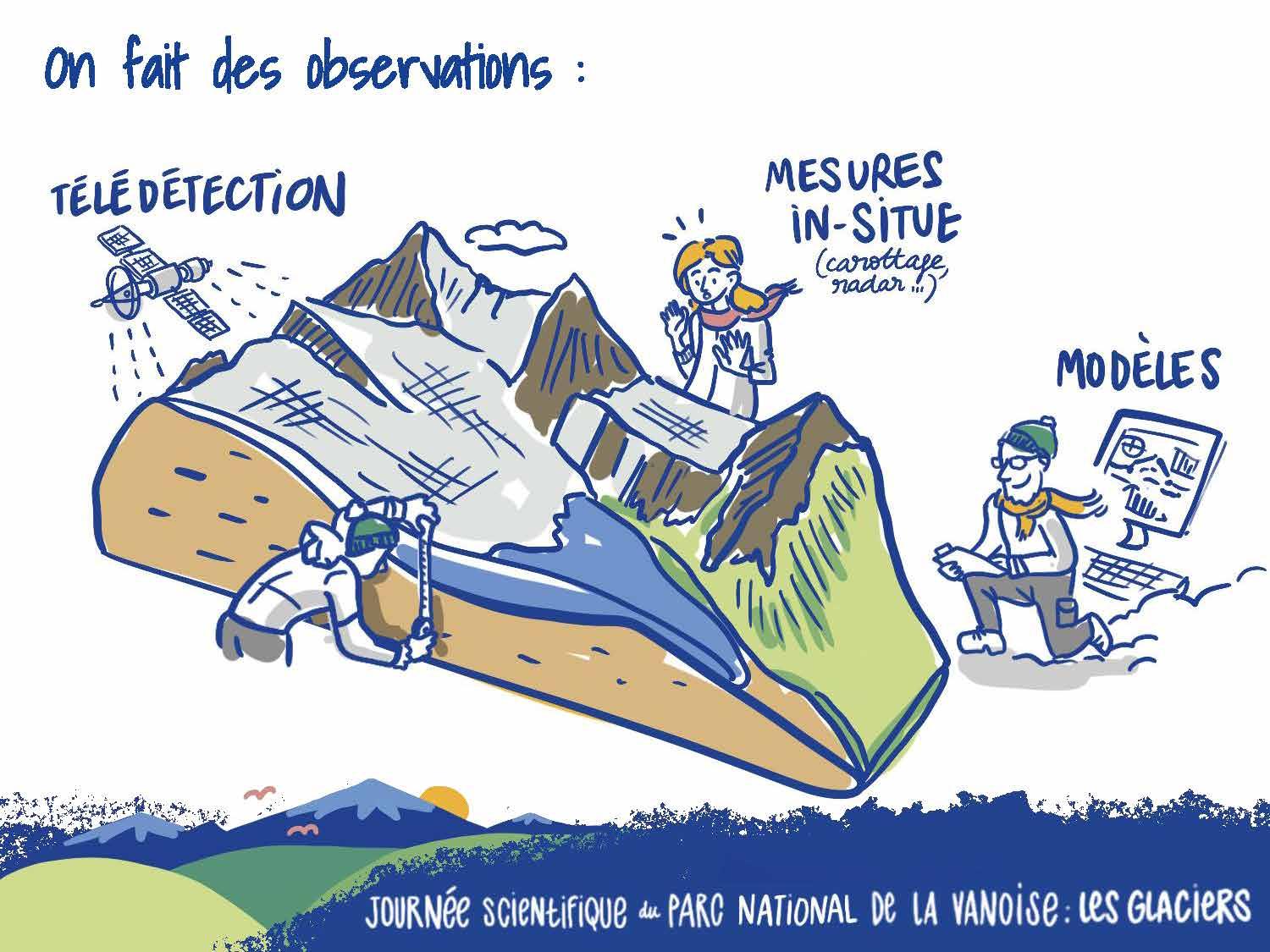 • Modélisation du volume des glaciers et perspectives d’évolution (Antoine Rabatel – IGE) : Les modèles de bilans de masse et de dynamique glaciaire permettent de suivre l’évolution des glaciers. Ainsi, par exemple, en suivant la tendance de la perte moyenne de la période 2010 – 2020, le déficit en 2050 sera de 65% du volume sur l’ensemble des glaciers de la Vanoise !