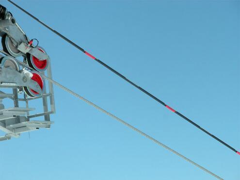 flotteurs ovoïdes rouges installés sur les cordelines de sécurité de téléski spirales avifaunes rouges installées sur les multipaires des télésièges et des télécabines. CATEX (Câbles Aériens de Transport d'Explosifs) : Poursuite de la mise au point du matériel de visualisation (peinture discontinue sur le câble...)
