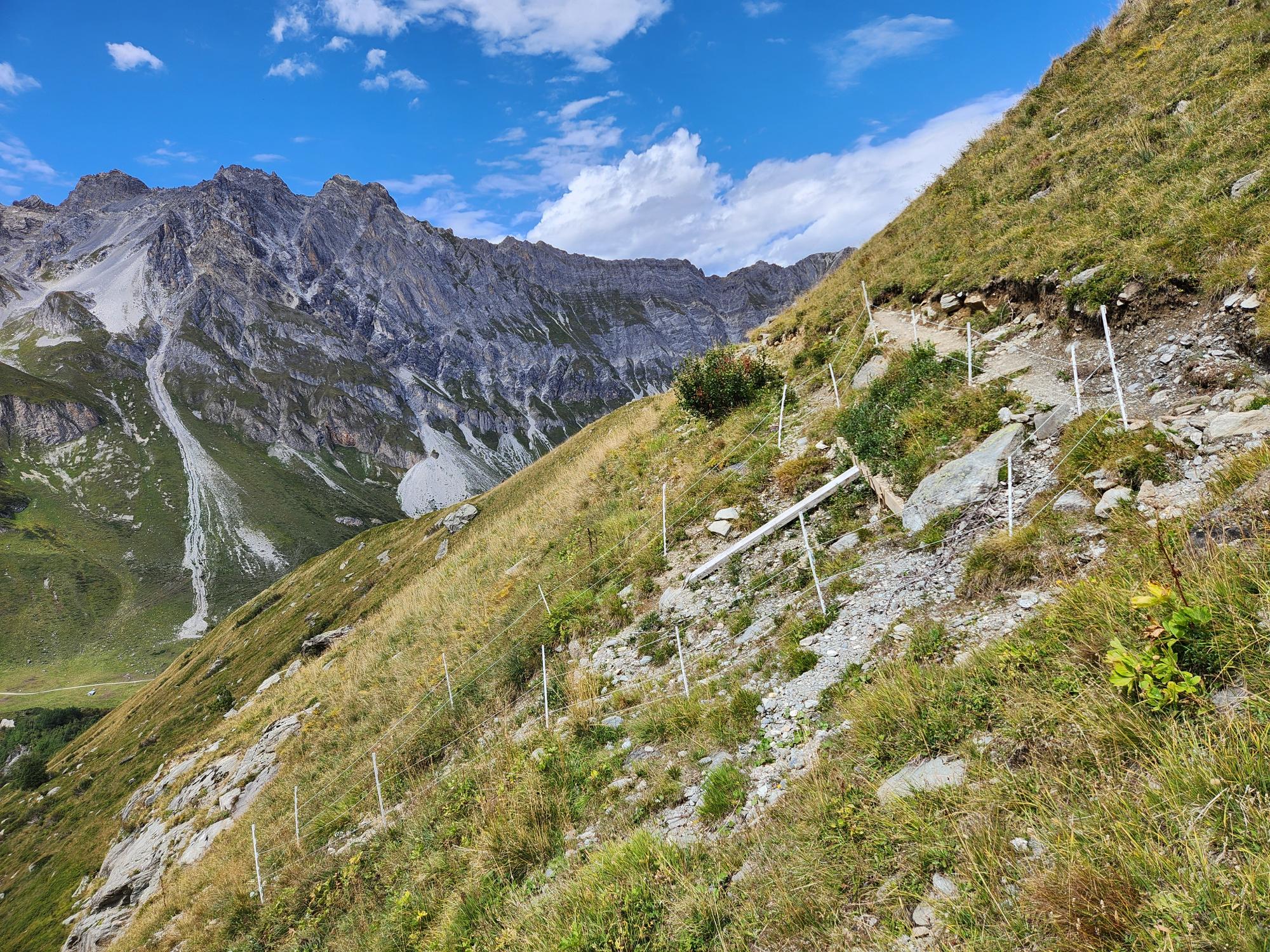 Le site du sentier du Génépy a été restauré à l'automne 2024 grâce à une opération de génie végétal avec le concours de l'Institut national de recherche pour l'agriculture, l'alimentation et l'environnement (INRAE). Ces travaux ont fait suite à un affaissement du sentier. Les agents de l'INRAE et du Parc national de la Vanoise, ont procédé à des plantations de saule et à des conduites en fascine de saule. Ici, l'intérêt du Vanoiscope, est de documenter jour après jour l'évolution de ce site.