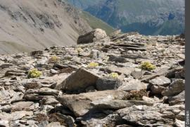 Cette plante se plaît sur les moraines, les éboulis et les rochers, uniquement à l’étage alpin et même parfois jusqu’à plus de 3000 m d’altitude. Les plus importantes populations de Vanoise s’observent sur des éboulis de calcschistes.